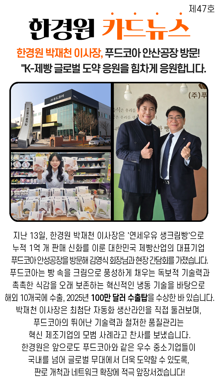 47. 푸드코아 방문 페이지 정보 작성자 댓글 0건 조회 11회 작성일 26-03-17 14:49 목록 본문 47. 푸드코아 방문 이전글48. 우리미소금융재단 방문 26.03.19 다음글46. 우원식 국회의장 26.03.12 댓글 0 댓글목록 등록된 댓글이 없습니다.