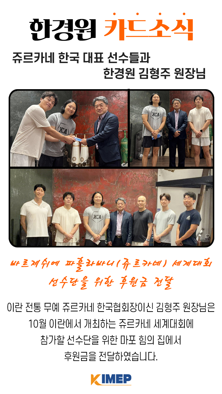 김형주 원장님과 쥬르카네 후원금 전달 페이지 정보 작성자 댓글 0건 조회 30회 작성일 25-10-20 10:00 목록 본문 10월 이란에서 개최하는 쥬르카네 세계대회를 위한 후원금 전달 이전글김만기 전문위원님과 방글라데시 투자개발청 25.10.20 다음글김형주 원장님과 한러수교 35주년 기념 학술회의 25.10.20 댓글 0 댓글목록 등록된 댓글이 없습니다.